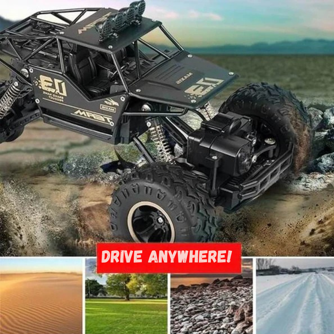 A: The car can navigate multiple terrains, including sand, dirt, gravel, grass, and pavement, making it highly versatile and super exciting to drive no matter the terrain.