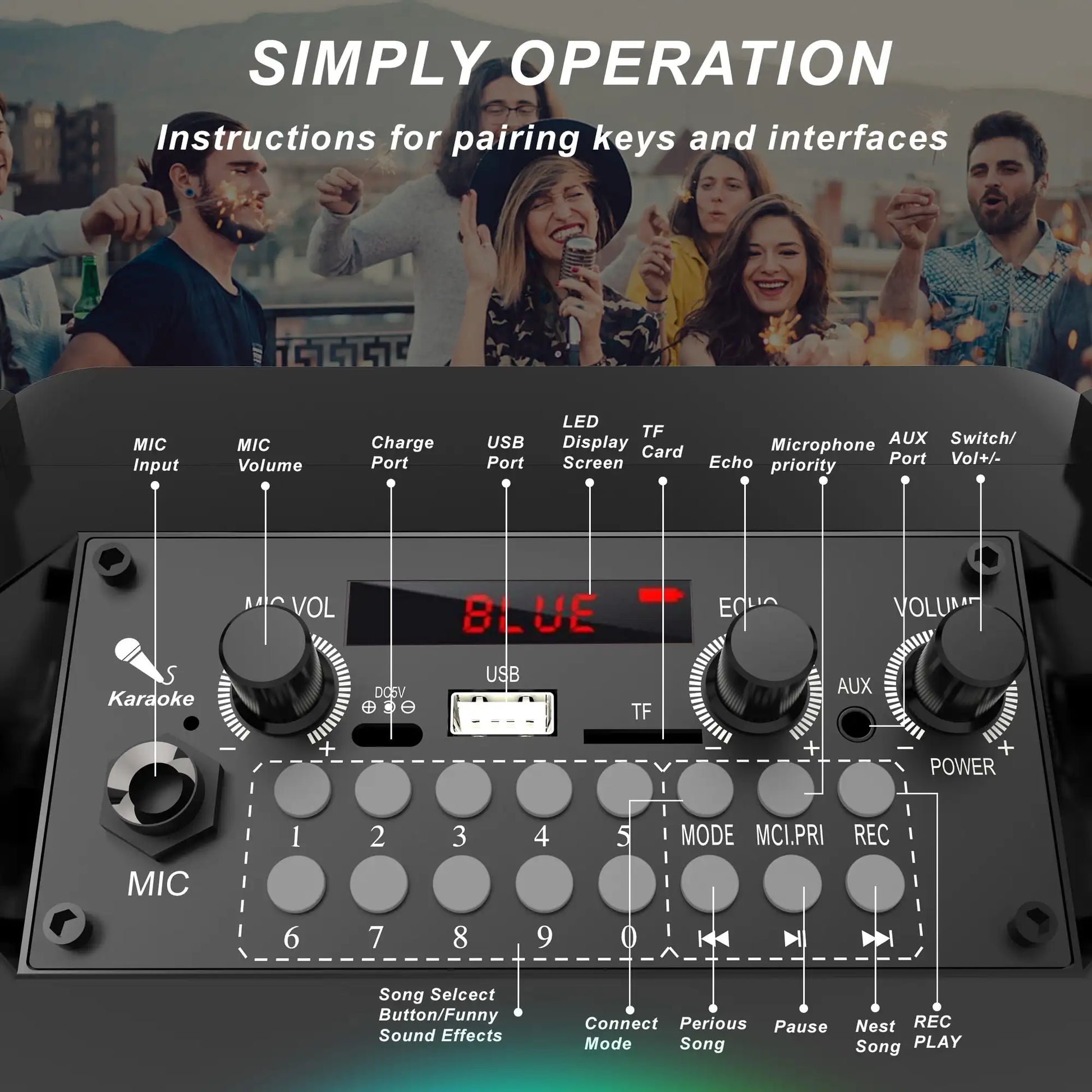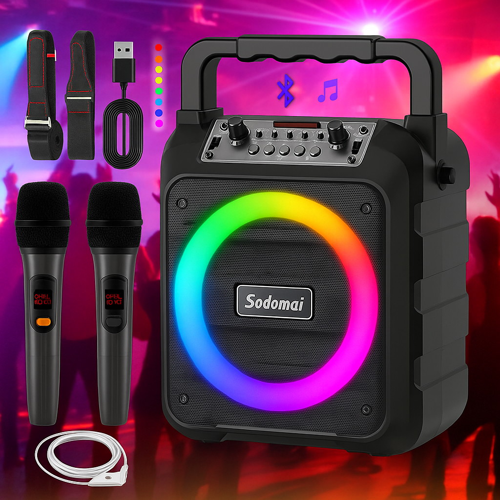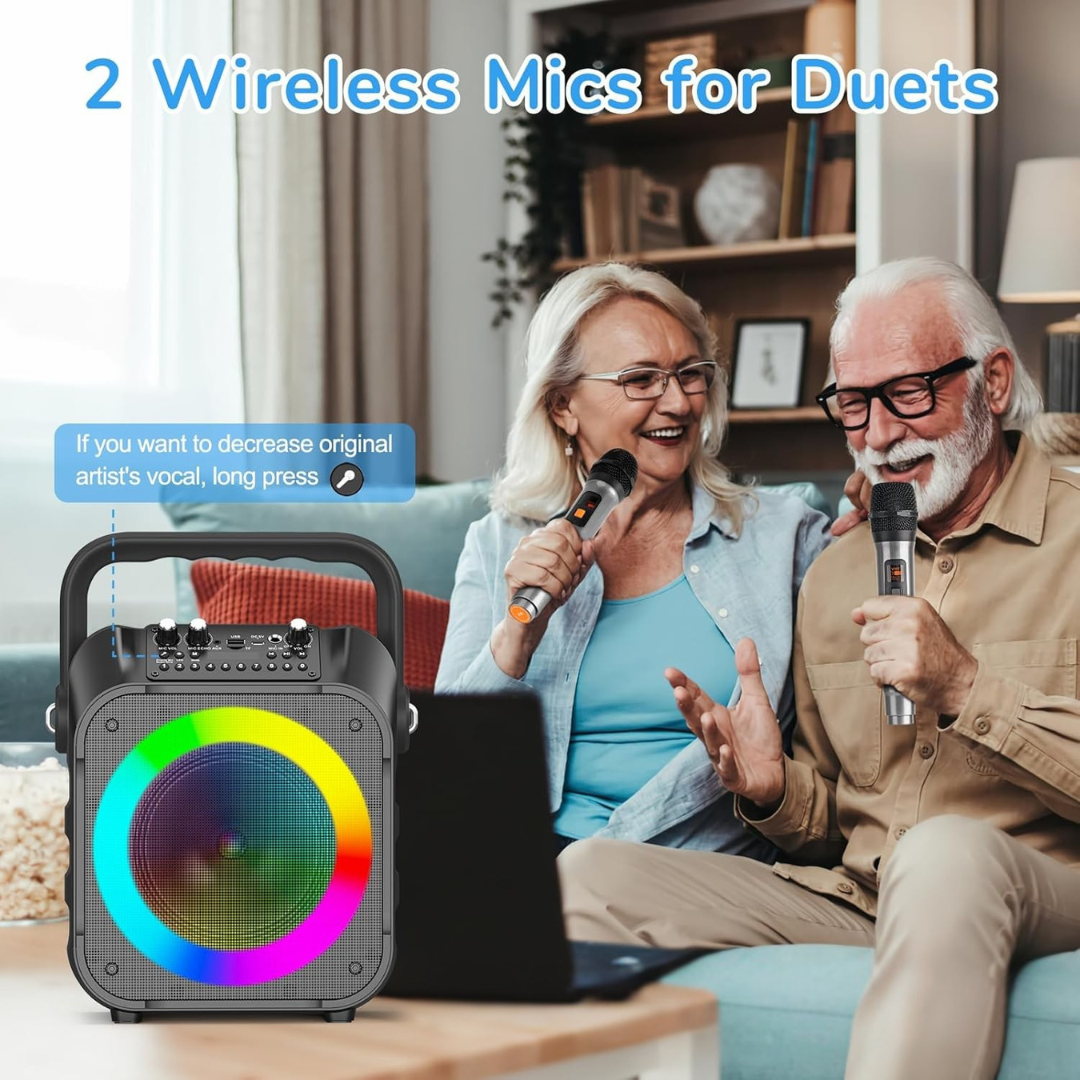 Bluetooth Karaoke Machine With Dual Wireless Microphones