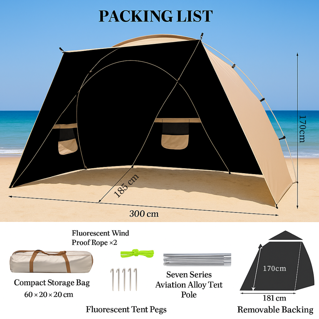 ๐ฆ Upgrade To A Stable And Secure Waterproof Canopy beach tent: Provides reliable rain shelter and includes stakes and ropes to anchor the tent firmly, ensuring stability and keeping you dry even in unexpected wet & windy weather.