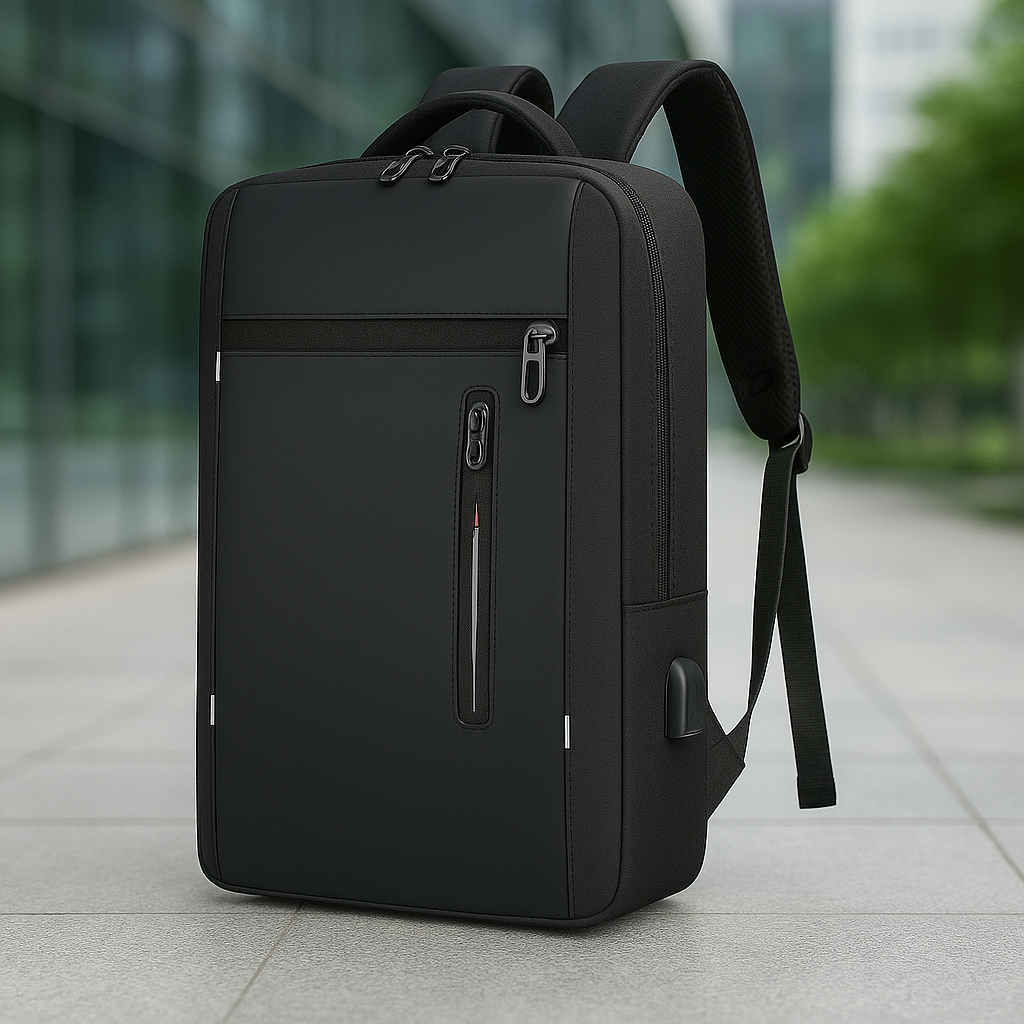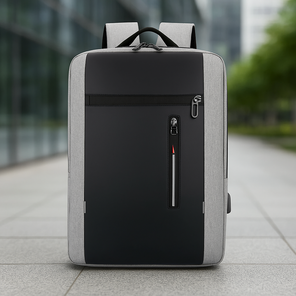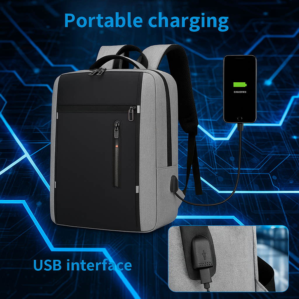 A: Yes, the backpack includes a built-in USB charging port. However, it does not have a built-in power source. You can connect a power bank (not included) inside the backpack to the USB port, which then allows you to plug in your phone or other devices for charging.